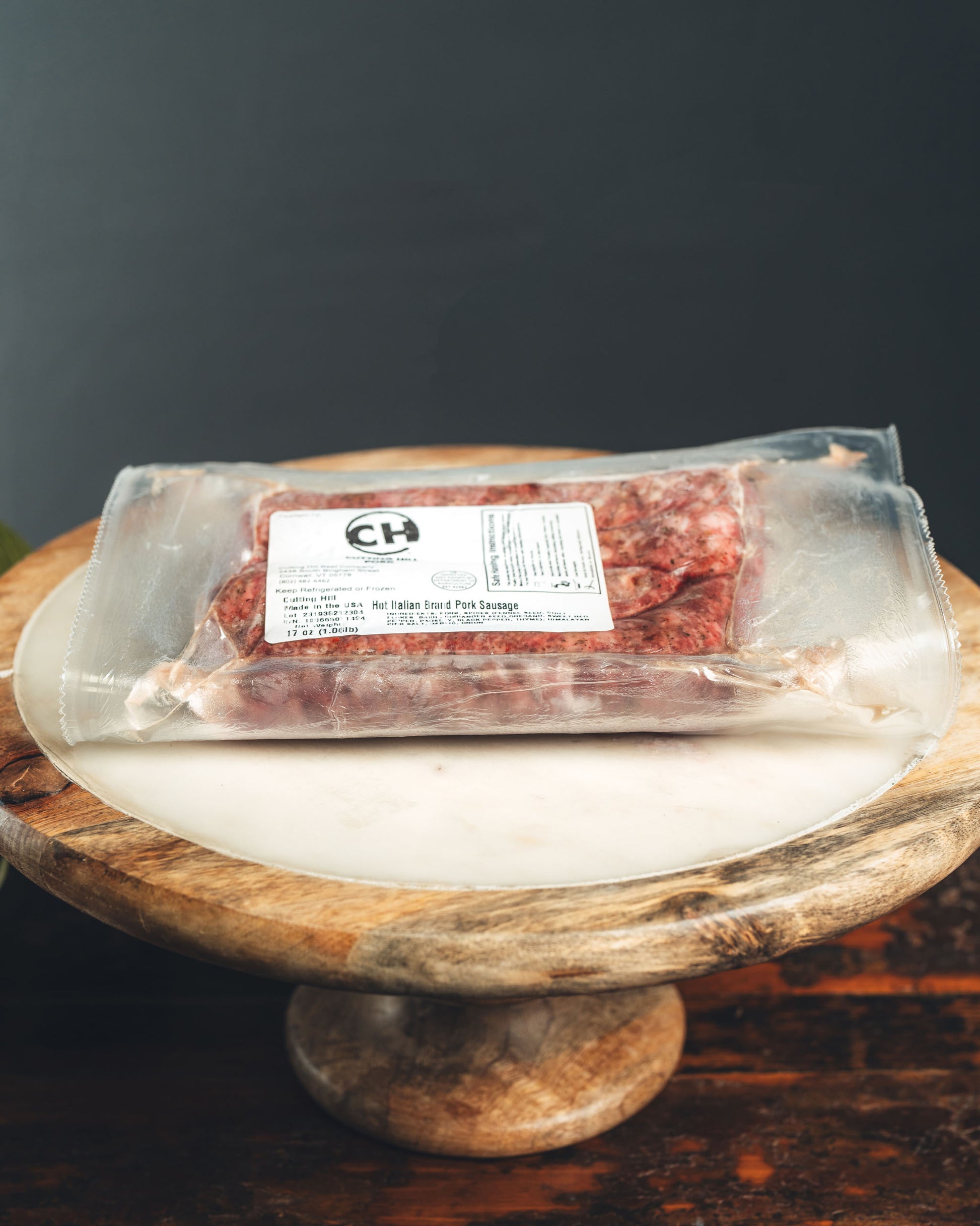 A staple from the farm, this sausage box features selections made from pasture-raised pork, including Sweet Italian, Hot Italian, Maple Breakfast, and Chorizo varieties.
